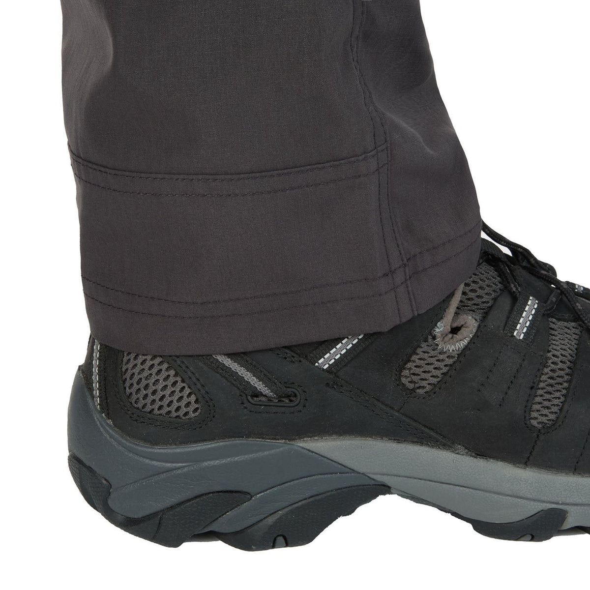 Practicality is also at the forefront with strategically placed pockets. A secure zipper pocket on the right side seam keeps essentials like keys or a wallet safe and accessible. On the left back panel, a cell phone welt pocket offers convenient storage for your device. Ample front pockets with direct entry, including a coin pocket, provide plenty of space for smaller items, while secure back pockets with pocket flaps ensure that your belongings remain safe and secure. Whether you're exploring the backcountry or simply enjoying a weekend hike, these hybrid hiking pants are the perfect combination of functionality, comfort, and style.